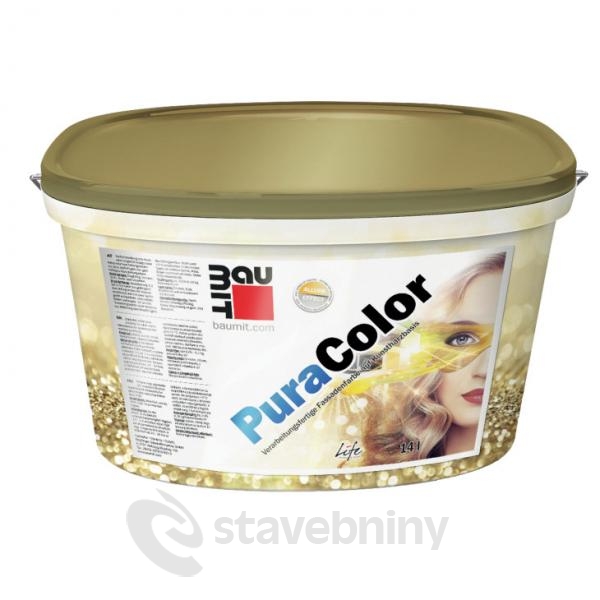 Baumit PuraColor je jednosložková, paropropustná vodoodpudivá fasádní barva pro ochranu a estetické ztvárnění povrchu fasád v sytých a tmavých odstínech barevné kolekce StyleTop (ve vzorníku omítky s koncovým číslem 1 - označené kolečkem).